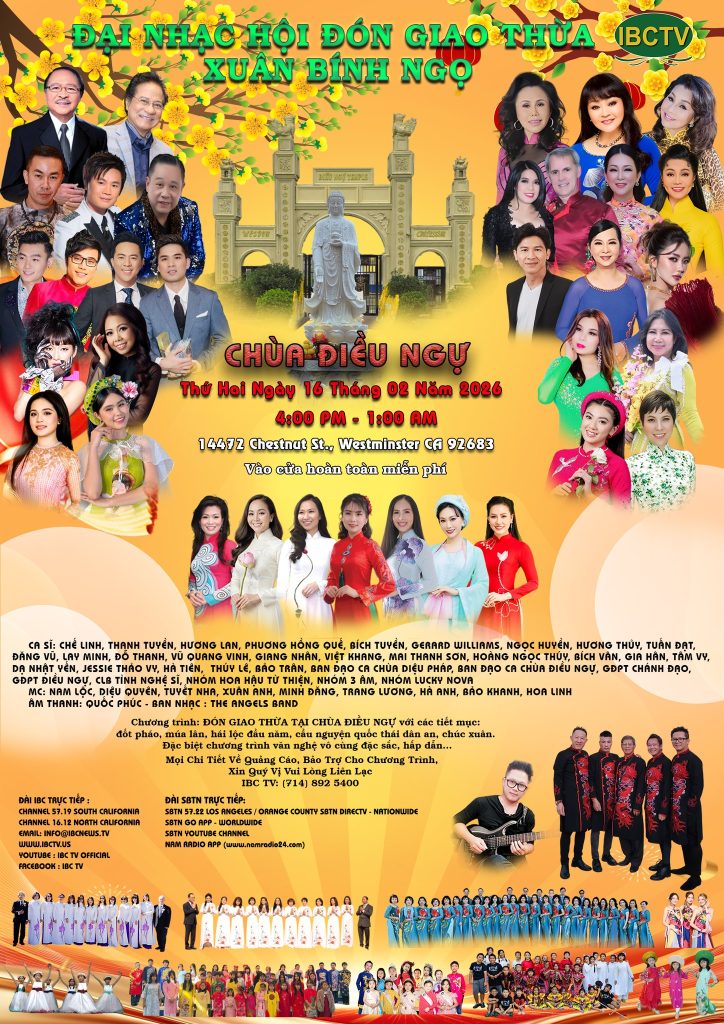 Khán giả vào cửa hoàn toàn miễn phí , không bán vé – Địa chỉ:Chùa Điều Ngự : 14472 Chestnut St, Westminster, CA 92683