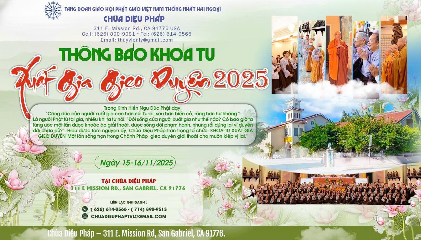 Tăng Đoàn GHPGVNTN Hải Ngoại, Chùa Diệu Pháp Thông Báo Khóa Tu Xuất Gia Gieo Duyên Năm 2025